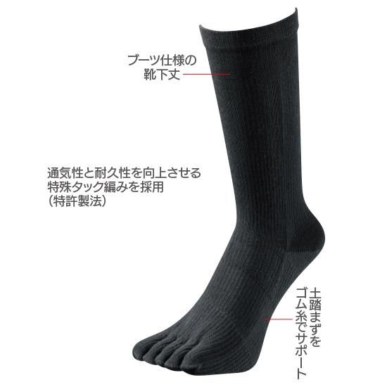 また、長時間のハードワークには踏ん張りのきく五本指靴下がおすすめです。