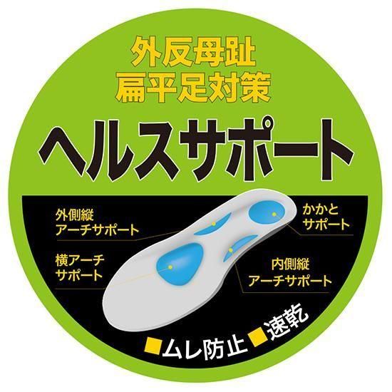 フェルトカップインソールでクッション性・吸湿性を発揮し、足裏4点サポートの適度なフィット感で歩行を安定!!
