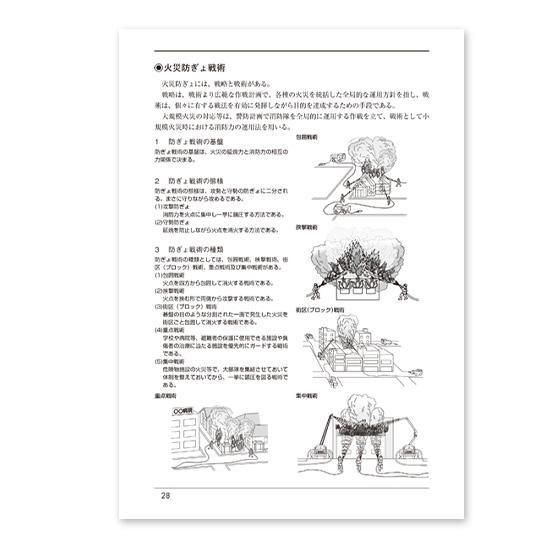 火災の性状、消火の原則をまず理解させ、次にホース延長、進入、火災建物内の活動の方法等を具体的にイラストと文で示し、分かりやすく解説。